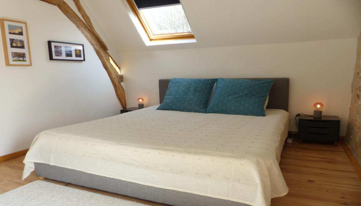 Chambre 2 pers : Couchage 1 lit double 160 x 200 cm, commode, assise