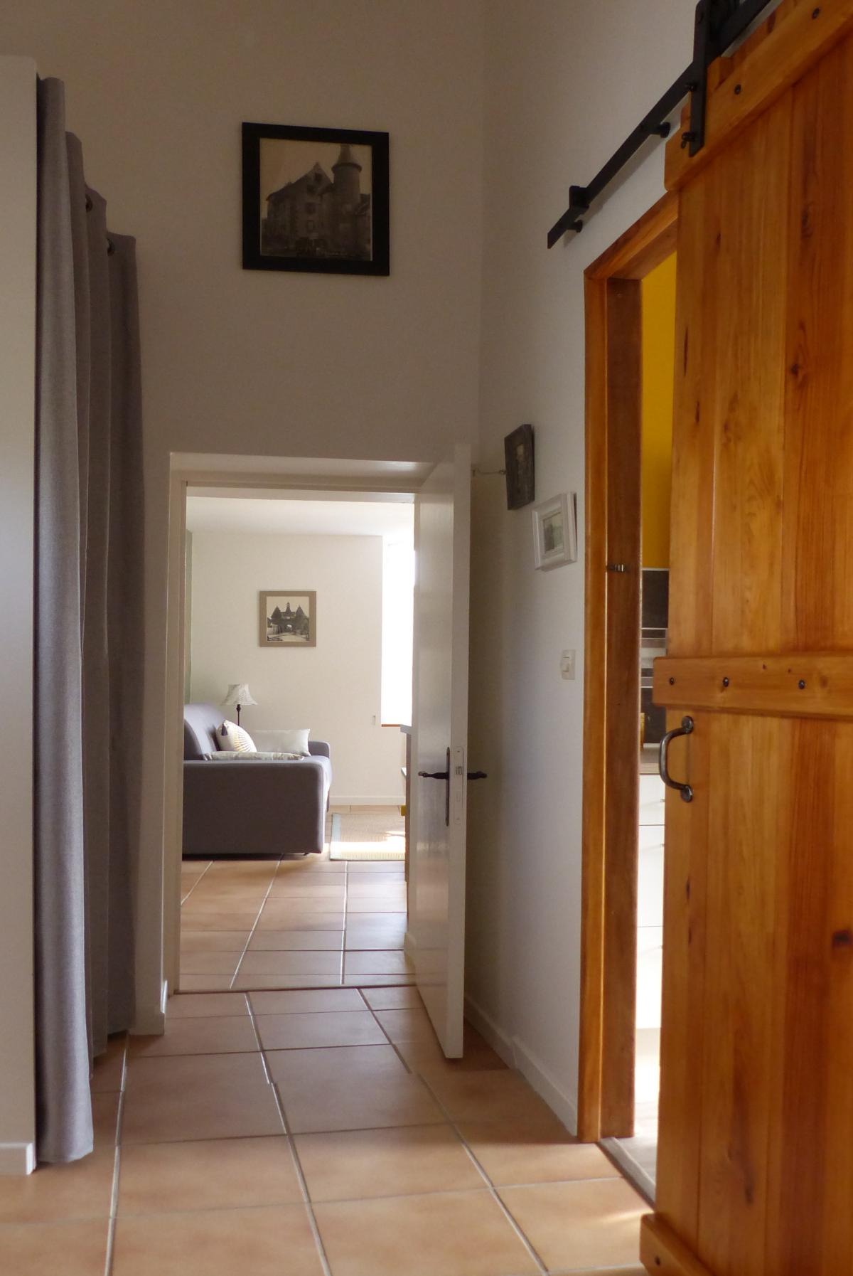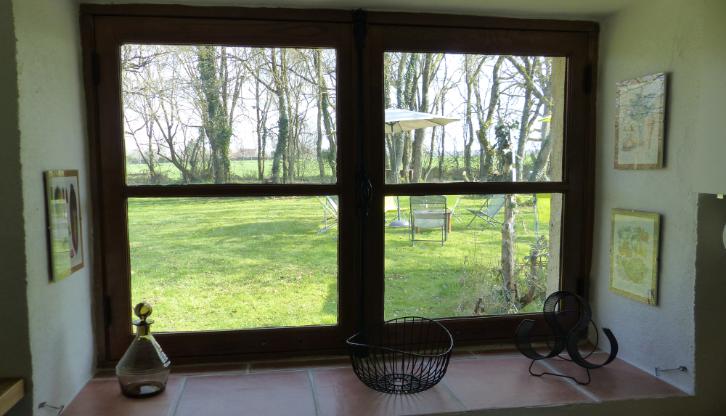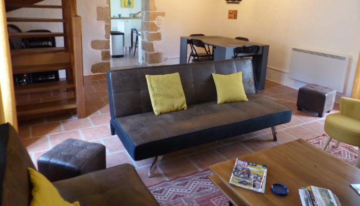 Gîte sur 1 étage, 4 pièces, 6 à 8 personnes : Salon, salle à manger, cuisine, chambre 6 personnes, chambre de 2 personnes, 2 salles d'eau, 2 WC, jardin, terrasse